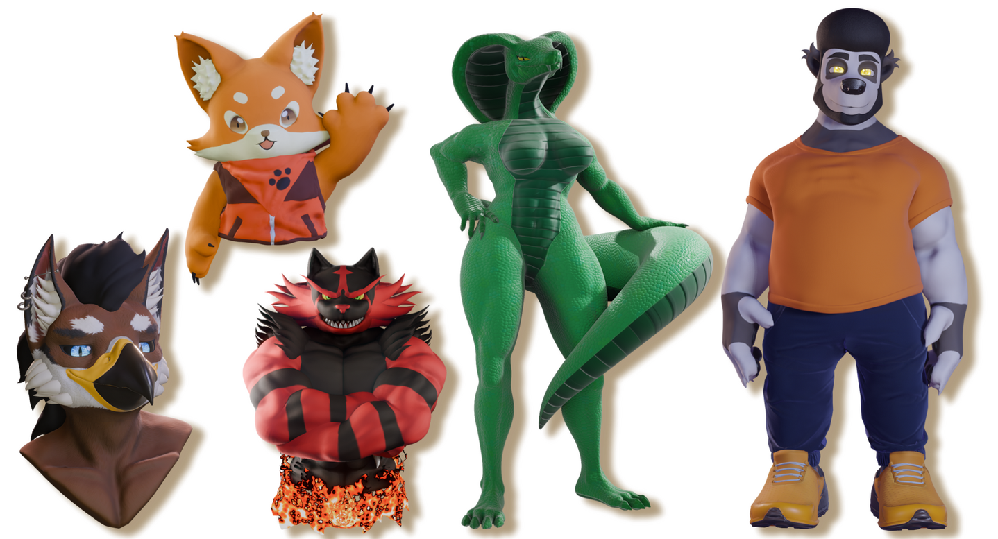 Outras coisas que podem ser adicionadas são texturas animadas, toggles de roupas ou cosméticos, interações especiais por exemplo quando apertar seu focinho sair um som, entre outros, se tiver algo em mente podemos conversar se for possível adicionar.